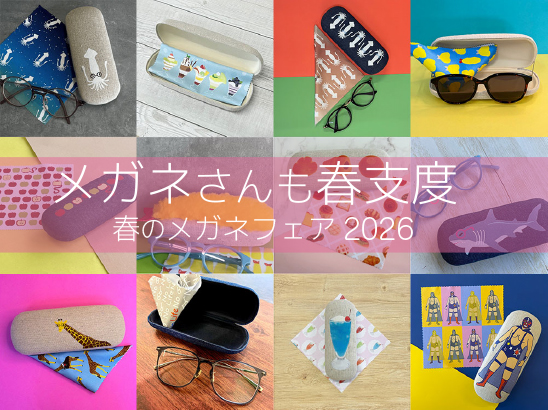 「メガネさんも春支度。 Glasses ready for spring.」をテーマに、新生活に向けてメガネまわりの支度準備にメガネ雑貨を推してます。 今年も静岡英和学院短期大学 集中講義「商業デザイン」の学生が写真撮影からキャッチコピーを入れてデザインまで制作してくれたビジュアルがフェアを彩ります。